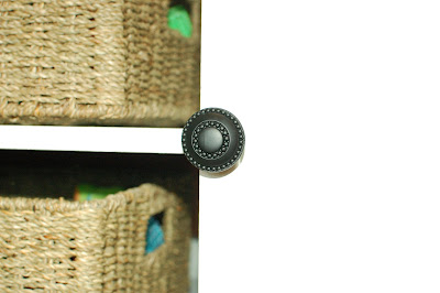 After the Gorilla Glue was dry {technically like two weeks after}, I primed the entire piece with Zinsser Oil Based Primer…the same primer that I used to redo my end table. After the primer was dry, I added a coat of glossy white paint…the primer was so good that it only need one coat of the glossy paint to look pretty great! I reattached the original hinges {which were black}, and picked up two new decorative black knobs to replace the small silver ones.