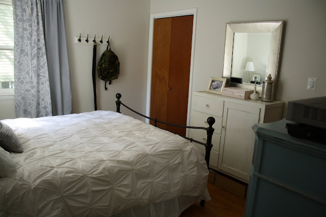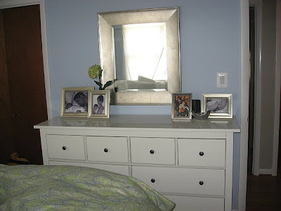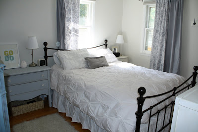 >Cassie I love your new bed and bedding. And that blue dresser is divine. I think I had this same master bedroom three houses ago.