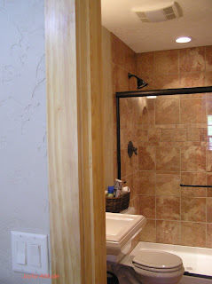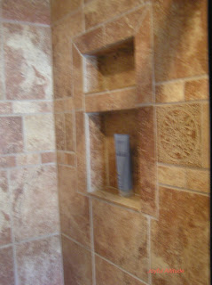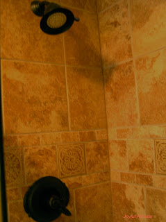 The color of the tile in this close up photo is truer to life. Dennis did all the shower tile work himself. I’m so proud of him. . .