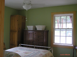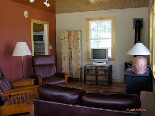 Did you notice the antique trunk and the tall cupboard in the living room? My grandfather brought the trunk on the ship from Belgium to America. The cupboard is the old brown cupboard we found in the barn. . .