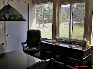 Mick, thanks for your comments. There are views from every window in the cabin. We chose that space for the TV because it was the least spectacular view and also because the natural light was less intense on the screen in that spot. As for the scripture verse, it was intended to illustrate the love our church family shares. God bless you. — Nancy