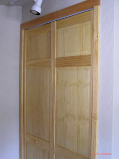 Earlier I mentioned that we made some adjustments to the kitchen cabinets. A pantry came with the unit, but it didn’t fit anywhere in the kitchen. We repurposed it as a small closet in our bedroom. . .