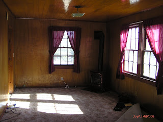 We moved in July 1, even though we still had work to complete. Except for a few small projects and decorating, the interior work is now done. If you’ve been anxious to see photos, you can relax. Following is a photographic tour of the cabin. I’m including some before photos taken on closing day.