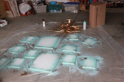 Next I spray painted the edges with a left over blue from a previous project. I am a sucker for anything AGED looking so I spray painted some brown on the edges too.