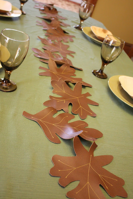 Kalleen At Second Street created faux leather leaves for a really cool table runner without having the mess of reall leaves.