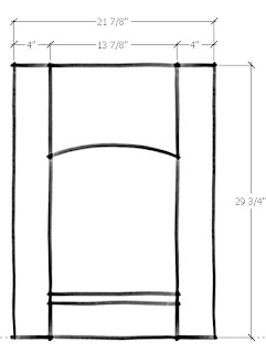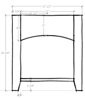 Here are the sketches we drew to build them. The front was created in three pieces. The two legs and the arched skirt. We simply nailed it to the existing frame, and then nailed a quick nail through the base of the skirt into the new legs. Patch and done! (we didn’t add to the existing shelf on bottom, but could have)
