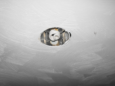 We added a ceiling medallion to cover the big hole. I got it on sale for $4.