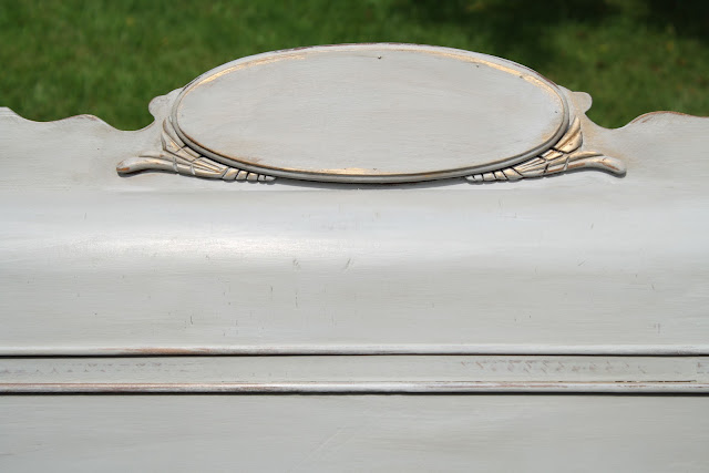 However … if you wanted to do a quick experiment/study to *test paint* ~ why not use some plain piece of furniture that did not have all the beautiful wood, the line work, the curves and other features of this Art Deco styled beauty?
