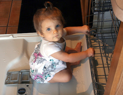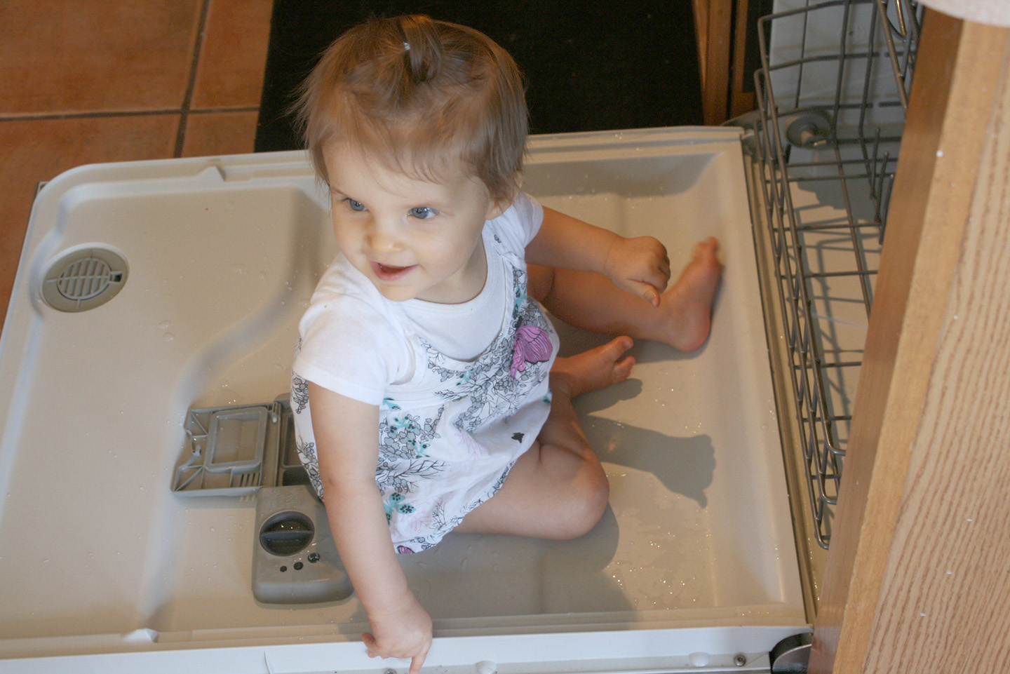 Okay, so really she didn’t “help” much but she looks cute sitting there rolling the tray back and forth.