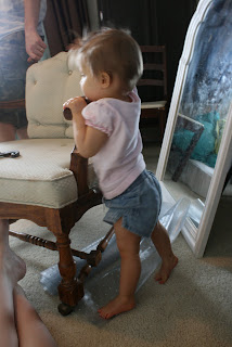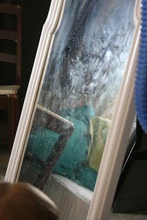 Below is one of Etta’s favorite “toys”. She loves to see the cute baby in there and give her slobbery, mouth full of food kisses, and well it looked like this most of the time: