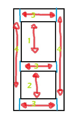 Below the red shows which direction I did the graining in each section.