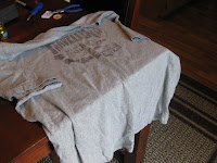 I LOVED Amy’s tutorial over at The Idea Room for a Rosette Lamp Shade. She did an adorable lamp for her daughter that had a TON of the cutest little flowers on it. I didn’t do as many as she did but I did take her idea in using one of my hubby’s old t-shirts he was going to throw away.
