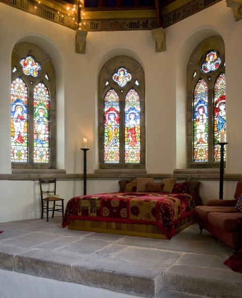 >I love those beautiful painted stone walls and the windows…*sigh*! I have a friend who converted a church into a home but it wasn't nearly as grandiose as this one! I could live in a church, but I imagine no matter how you choose to furnish it, someone will have an opinion about how it "should" have been done!