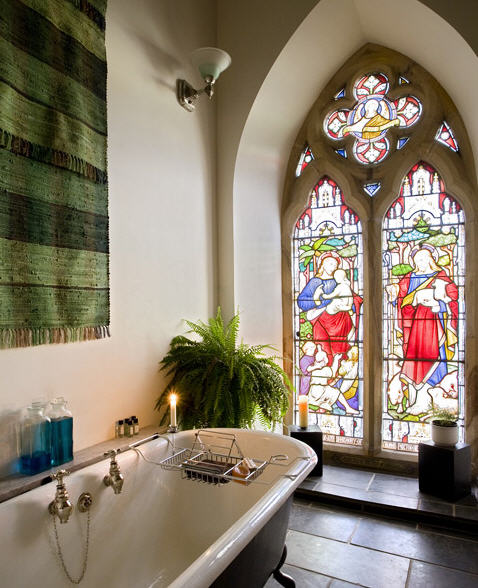 >The stained glass and grave yard creep me out. I just don't want to bathe next to a picture of Christ. But i think the rest of everything is beautiful