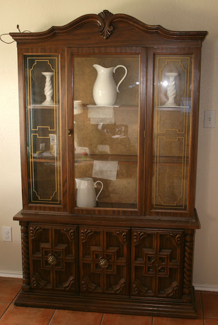 We had the hutch sitting in our dining room untouched for at least 6 months, I tried adding some things inside to see what it would look like but like I said before we didn’t’ have any shelves, so I used random crappy wood scraps from the garage. In the end I just couldn’t stand the huge brown monstrosity anymore so I thought we should give it a quick update for the mean time…(this is pretty much how all of our projects begin by the way!).