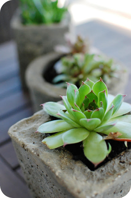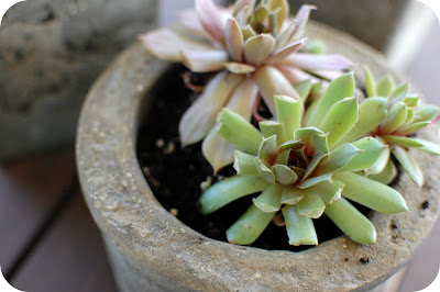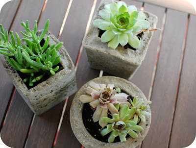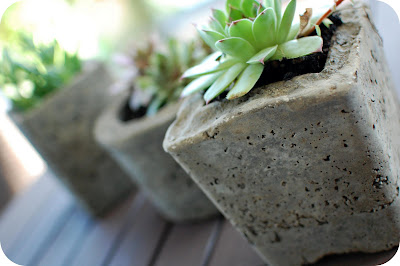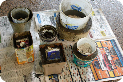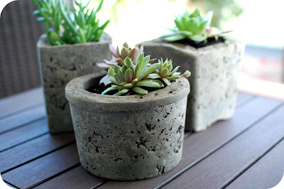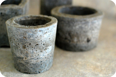 I made these hypertufa pots after seeing this article in the March 2010 issue of Martha Stewart Living Magazine. My Mom and I made hypertufa pots a few years ago using a similar method. They were larger than these and not quite as cool! When I saw this article I knew I had to try again. It’s actually a pretty easy project.