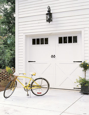 In honor of our awesome garage door- to Carriage door tutorial tomorrow, I wanted to show you some wonderful doors. I lean toward the ones with the “x” on the door, I just love them!