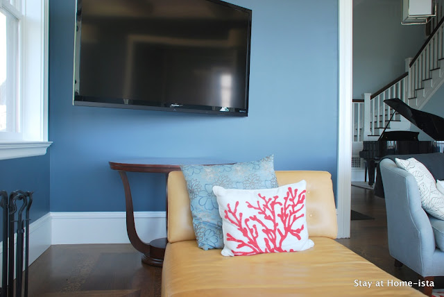 The round table under the TV used to be in our entry, but it moved here once we inherited my childhood piano from my mother’s house.