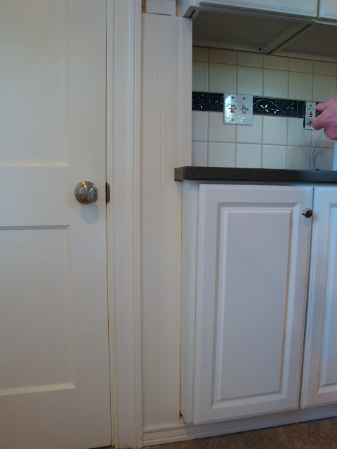 The toughest part was working around all of the odd edges and our TONS of outlets. (I just counted, we have 9 outlets in that little kitchen.)