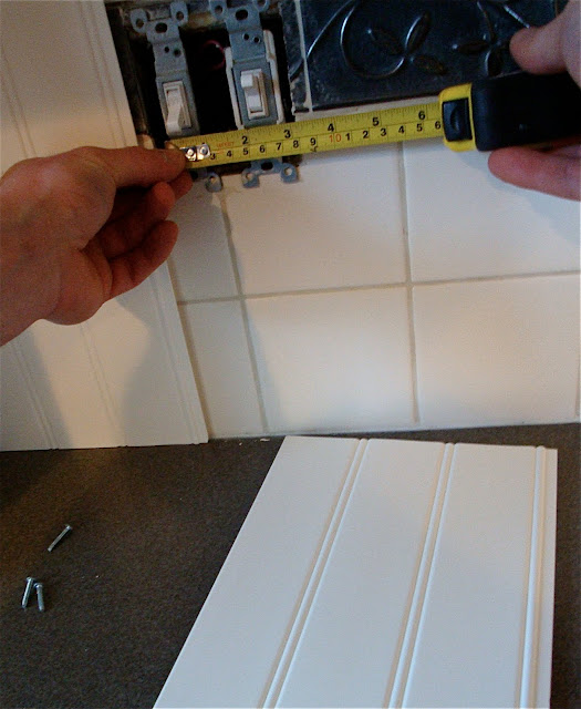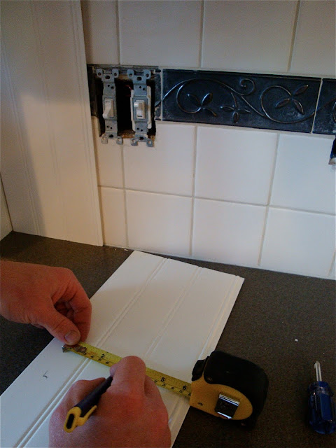 Over at the Little Mac Shack they have been working on covering up their kitchen backsplach tiles with a new updated beadboard look. See how they accomplish it with no tile demolition.