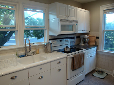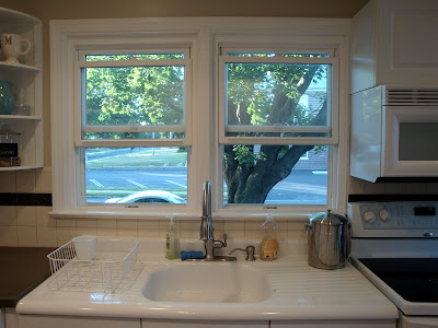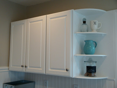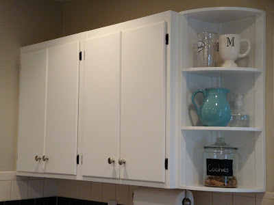 The new cabinets look much better and Mr. Mac even built me another corner shelf to fill the space between the cabinets and the window…
