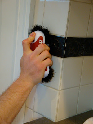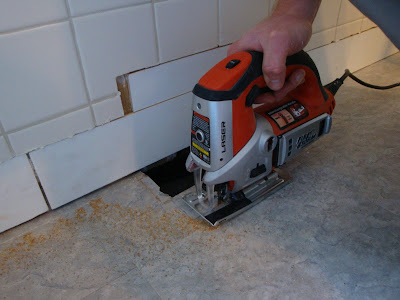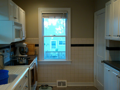 OH, the kitchen tile. The thing is it wasn’t hideous. It wasn’t puke green, or cracked or stain. It just wasn’t what we would have picked. Most of it was a dingy cream color with a gray-ish decorative band near the top.