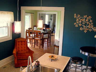 I came home from work one evening and decided to finish painting the kitchen Dark Teal!! It was just dark enough outside that I couldn’t paint without the kitchen light on. But when I flipped it on… NOTHING HAPPENED. This happens about 50% of the time with our tacky fluorescent central lighting in our kitchen. It just flickers, and then nothing. On this particular evening… it. made. me. furious! All I wanted to do was finish painting!