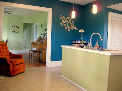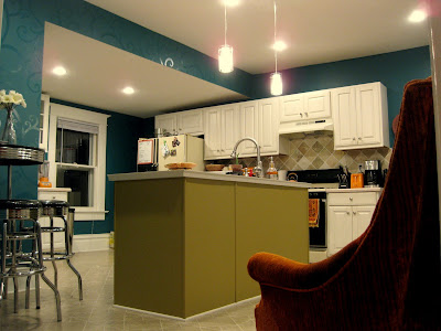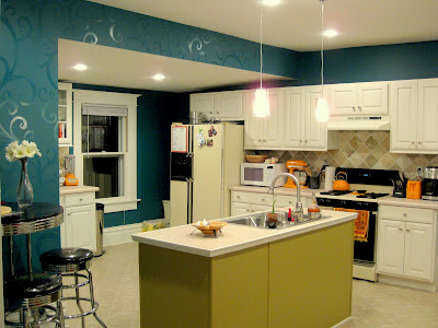 >Looks great! Love the painted swirl pattern. I also love the pop of color on the island!