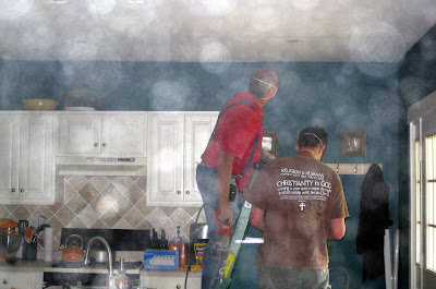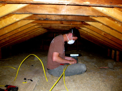 Although Nick has some experience with electrical wiring and such, his dad’s knowledge is vast. So He and Diane came up for the weekend. It was messy.
