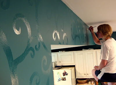 >Saw this idea linked on kimboscrafts. LOVE the swirls! Genius! This idea is going in my folder for when I have a non-rented residence to paint!