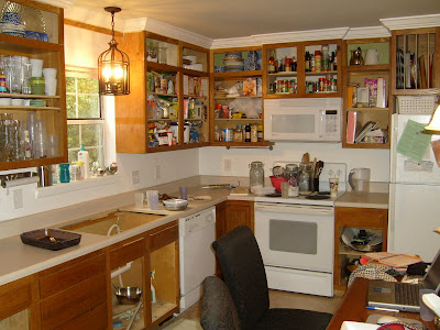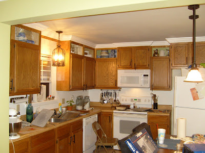 This is the before picture of the upper cabinets before I tried staining them to match the other cabinets to match the existing oak.