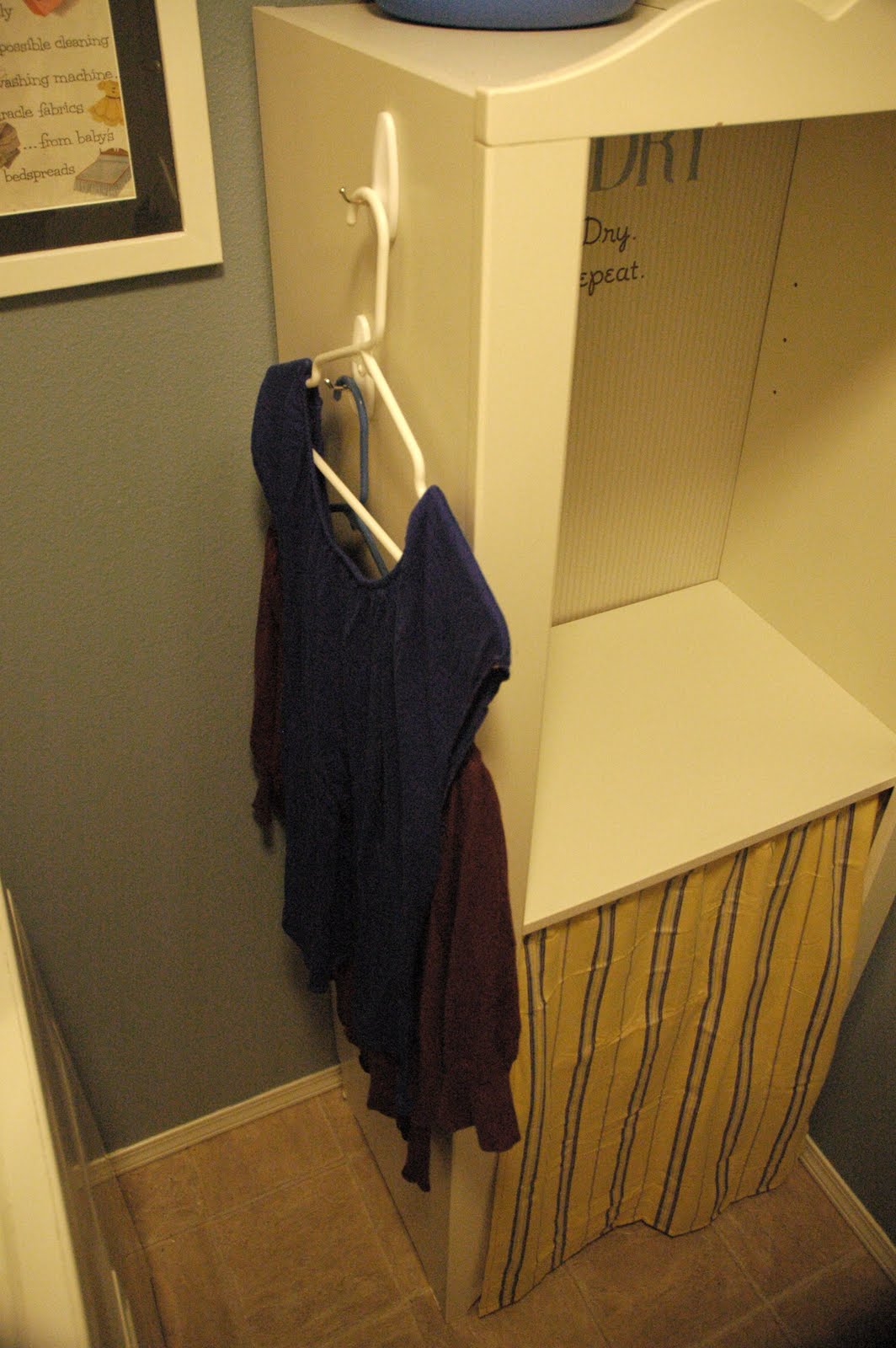 >This is pretty much the exact same laundry room that I have in my new house. I am grateful to finally be getting a laundry room but there's not a lot of space. I like the curtain idea because the laundry room looks right into the rest of the house! Good job!
