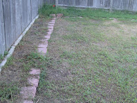 Here you can see where the cooler IS still leaking, the staining it has caused, and the attempt to landscape. Free brick pavers to move around, and reuse, sounds good to me!