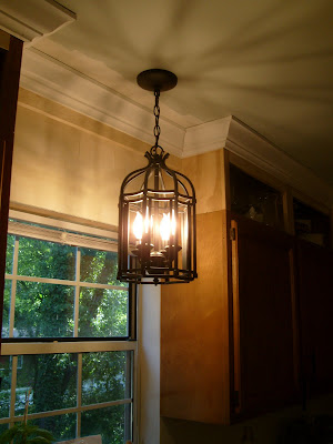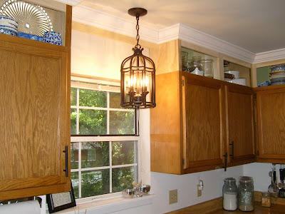 We went to the local Habitat for Humanity donation center/store and found a great $10.00 light that matches the finish on our other light. It was brand new and I LUV it. It also gives off a lot of light! So I am more than pleased.