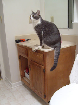 But since we may not have time this will have to do. I don’t think it will be much of a problem. Oh and as you can see, Buddy helped a little, til he was escorted out of the bathroom at painting time.