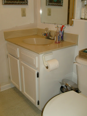 We were thinking of replacing the vanity top. If we stay here we probably still will. But if we need a quick sale, it will work how it is, because the white cabinet equals out the white toilet.