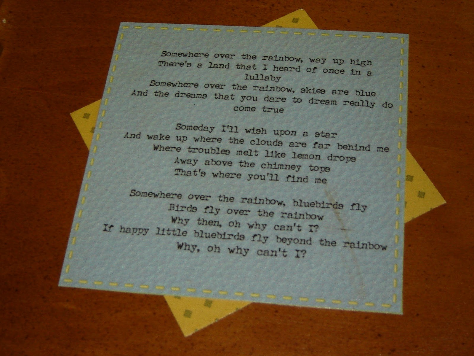 The words to “Somewhere Over The Rainbow”