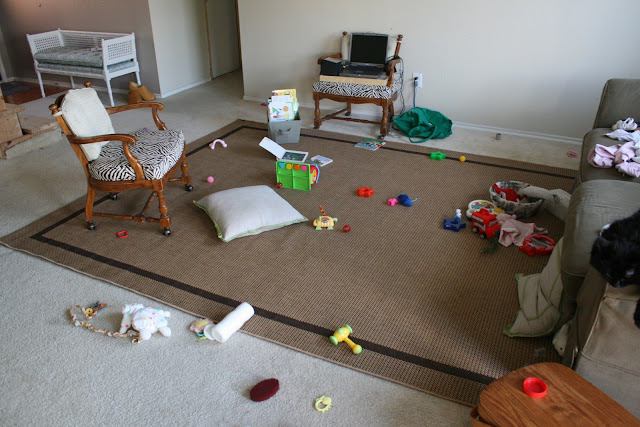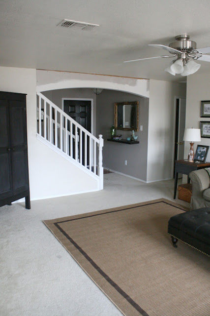 Our rug that is in the living room I love, but was too small, so I tried finding a cheap replacement – first we removed it then put the new indoor/outdoor rug I got for like $75.00 at Lowes in it’s place… don’t love it, but it worked.