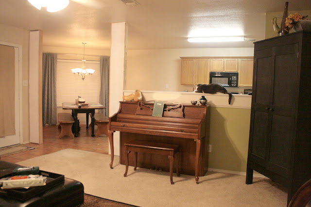 At this point we removed the piano to the living room upstairs. We had some very nice guys from church who came over and moved it, I felt awful asking but was so thankful for their willingness!