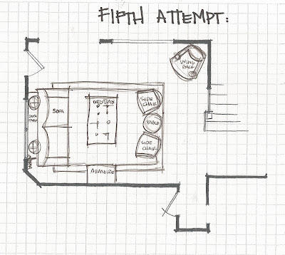 >This made me giggle! I don't think I've ever known somebody to move around furniture this much in one room. Curious to see #6!