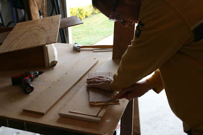 This Saturday we got to work. Justin had a bit more work than he planned. The prior owner had tried to repair the drawer before, with HOT GLUE, so he had to scrap that out. Then re-route a groove for the new bottom, that was a bit thicker. Wood glue, some staples and presto we had a drawer. Then he had to do that again. After that, he replaced the missing rails.