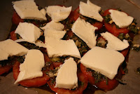Now drizzle the marinade over the tomato slices and top with sliced mozzarella.