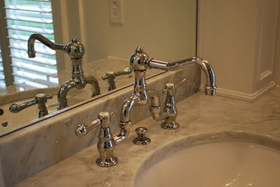 I have always loved the vintage look of a bridge faucet, and these Newport Brass fixtures have so much character.