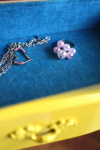 >That is adorable, I would have kept it for myself. I like yellow, esp. with blue and white. I had a yellow and white bedroom growing up, this would have been a favorite item of mine back then! For all my "jewels"!