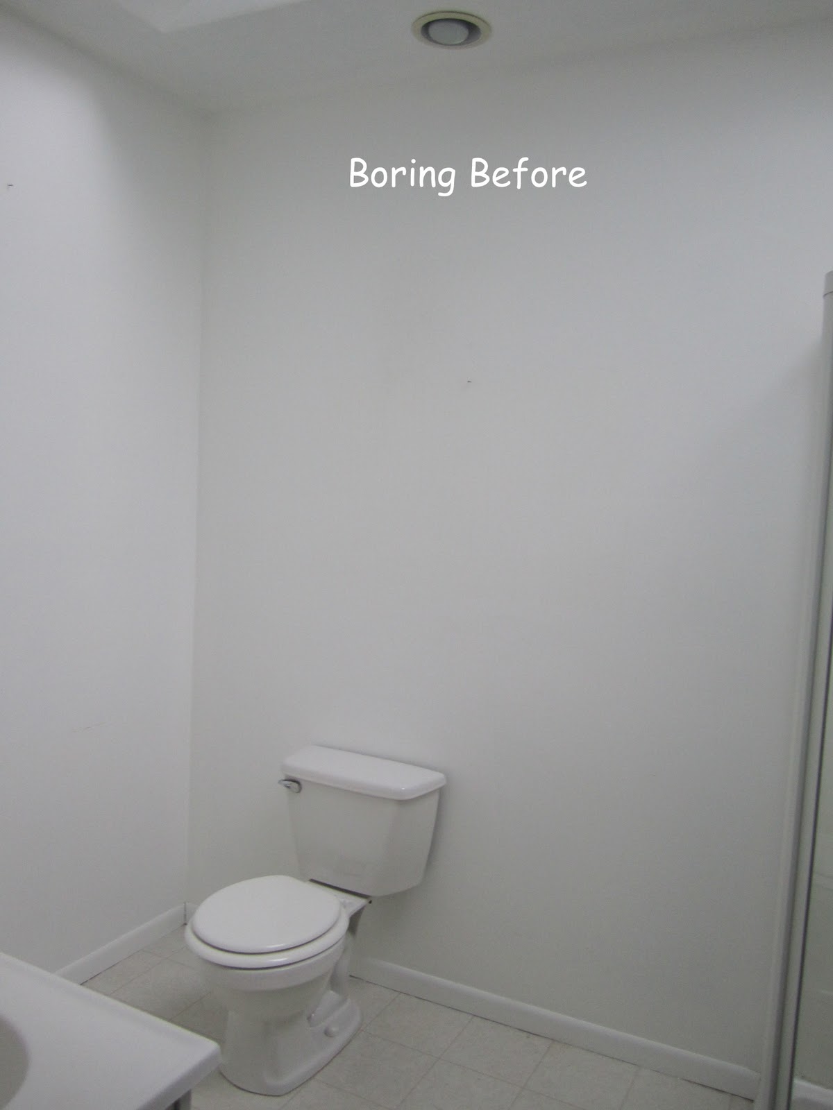 Our bathroom walls are just a simple white satin by Behr.