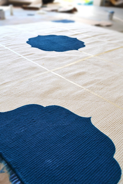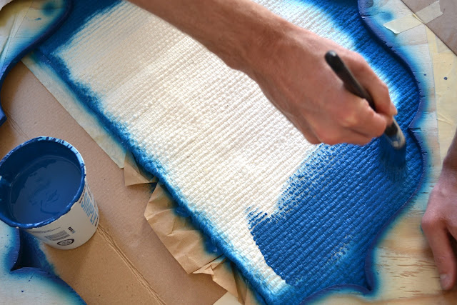 sw loyal blue, fabric medium, plywood for the stencil, and a rug (5’11” x 8’2″) from Ikea