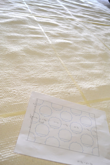 We printed out our plan and wrote down some measurements – since the edges of the rug aren’t square we ran tape down the middle of the points of the medallion so that they would line up