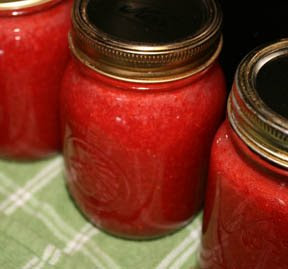 I made Strawberry Freezer Jam. FIRST time ever. Strawberries were a buck a pound at Wally-world. How could I resist? I purchased the low sugar SureJel option. I was shocked when I got home and looked online for the recipe. Even the low sugar jam called for 3 cups of sugar! (I looked at the regular stuff. It called for 7- yes, that’s right, 7 CUPS of sugar to 3 cups fruit? Seriously? Seriously?! Yuck!) So, for lunch today I am having a whole wheat, natural Pb&j with my own jam. Too cool! Look at the beautiful color: