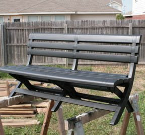 I spray painted an outdoor plastic bench (don’t worry- I wore gloves, glasses and a mask, and was in the middle of the backyard for ventilation). We got the bench at a garage sale like 5 years ago. It is really nice -but green, so I painted it black- my favorite color du jour for furnishings. Now it matches out other outdoor furnishings. (minus the table I just got on Craigs list for $10.00 to be updated, and blogged about soon)