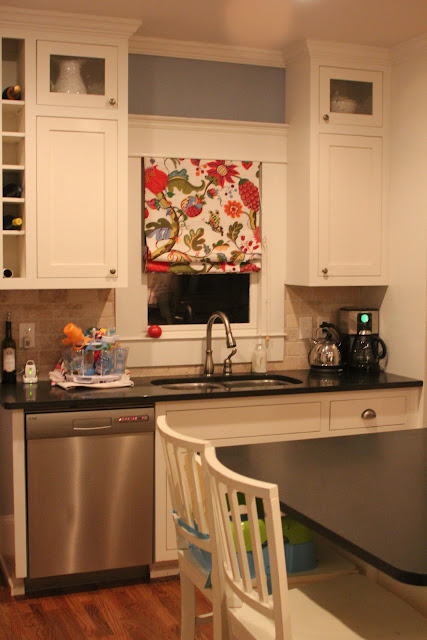 >I love the fabric you used on the roman shade. Who makes it and what's the pattern name? Your kitchen turned out great!